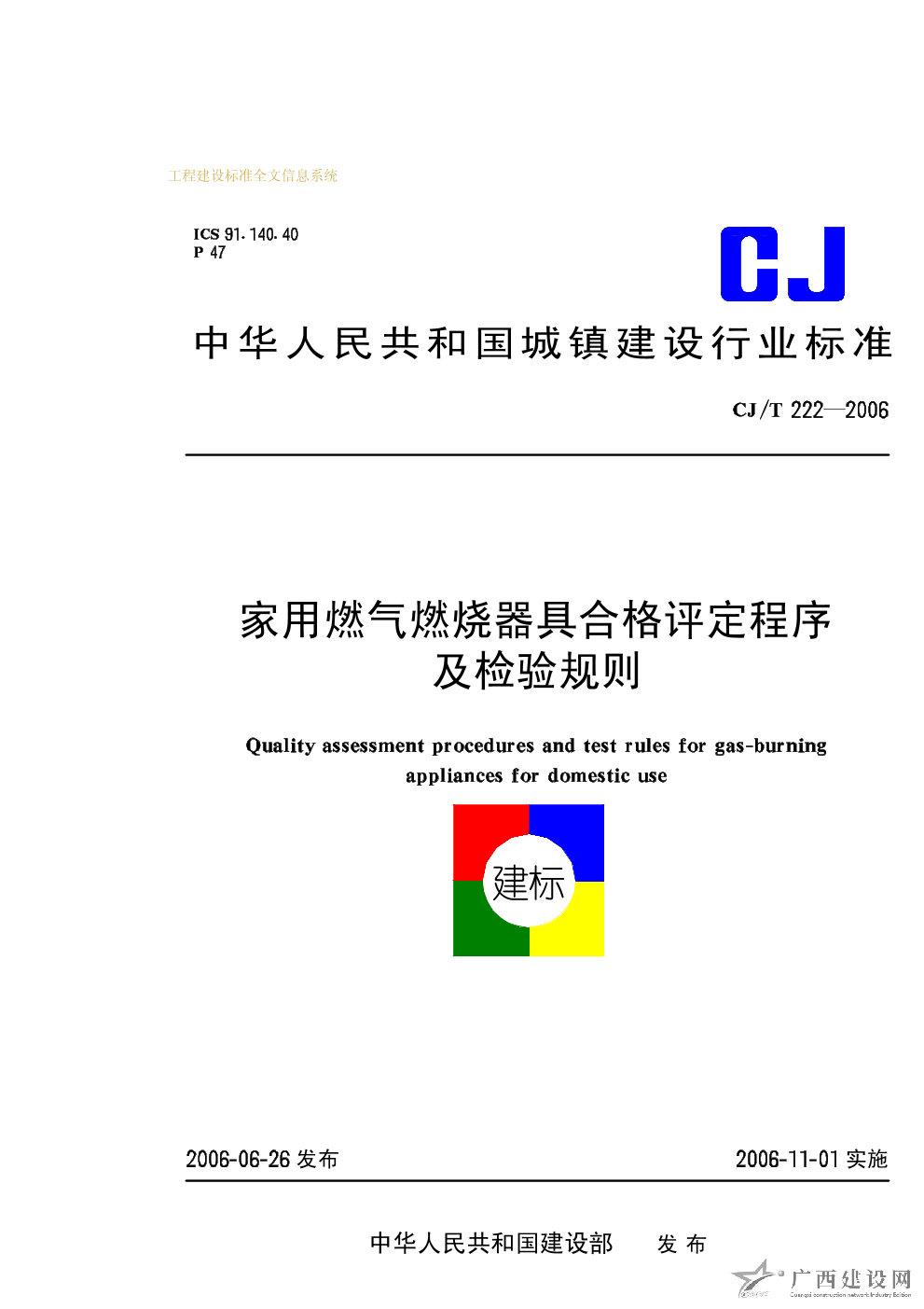 家用燃?xì)馊紵骶吆细裨u定程序及檢驗規(guī)則 CJ/T222-2006