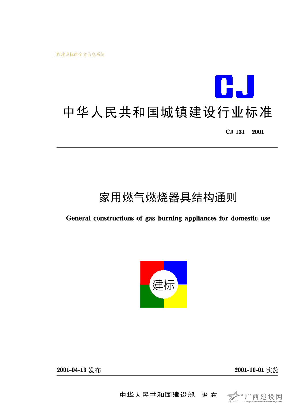家用燃?xì)馊紵骶呓Y(jié)構(gòu)通則 CJ131—2001