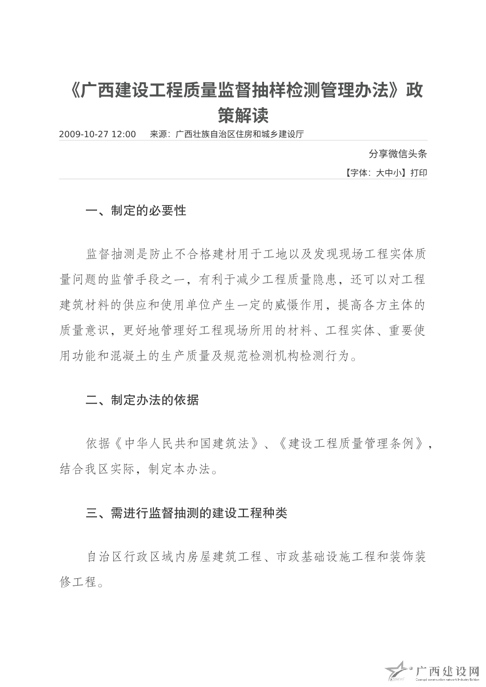 《關于加強我區建設工程質量檢測監督管理工作的通知》政策解讀
