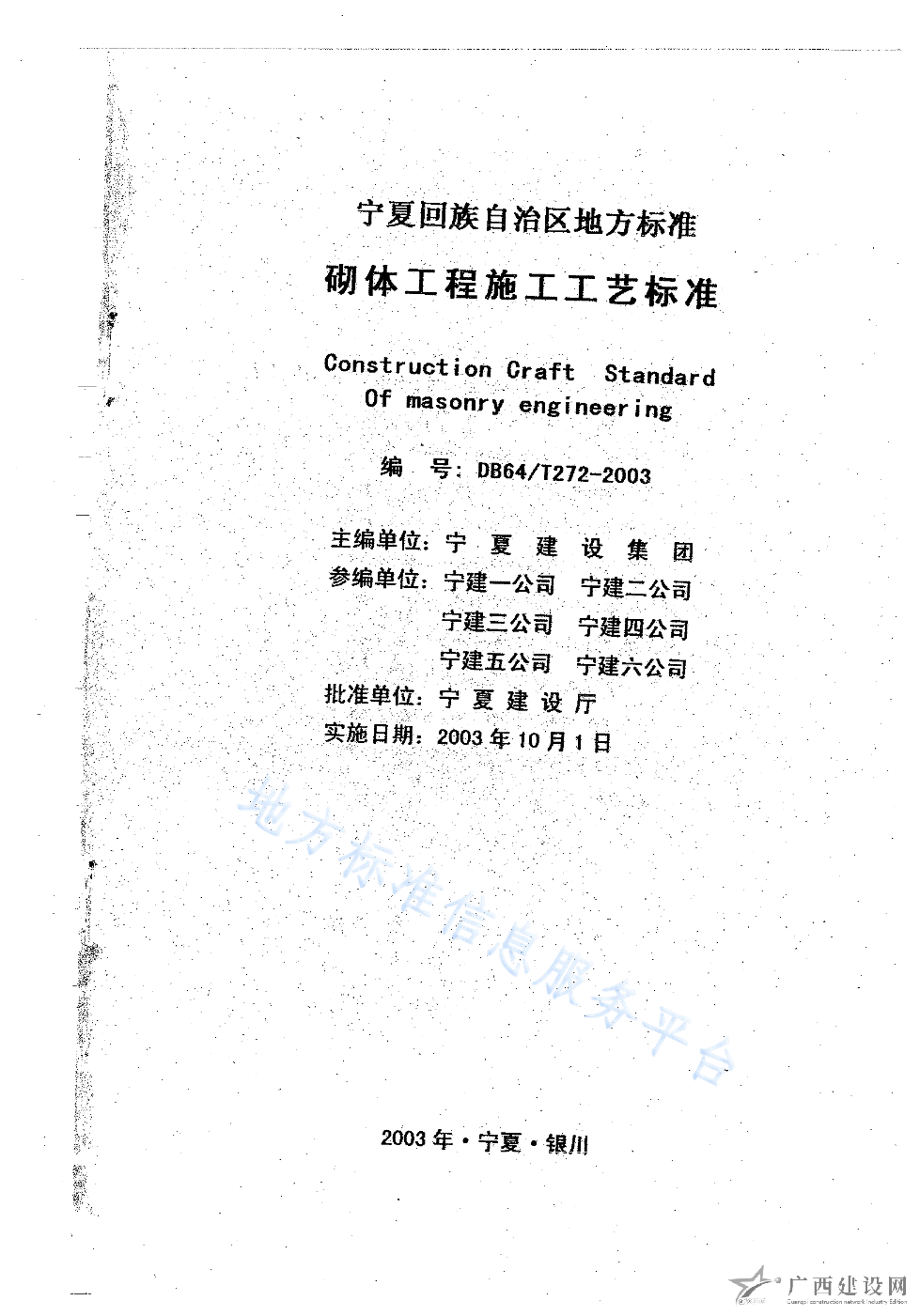 DB64 272-2003砌體工程施工工藝標(biāo)準(zhǔn)