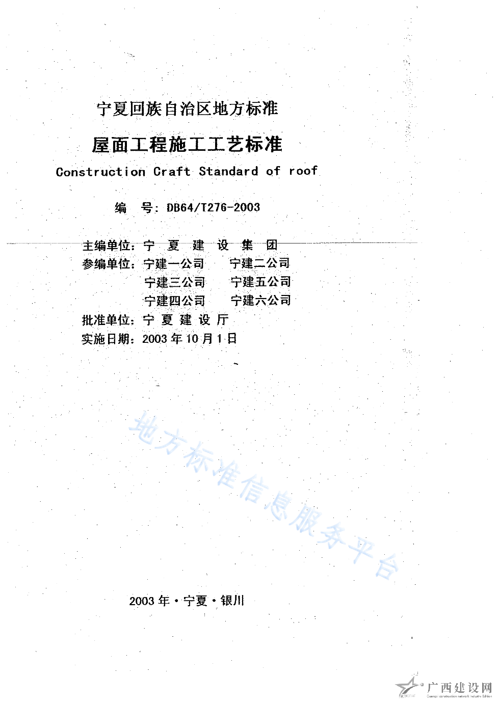 DB64 276-2003屋面工程施工工藝標(biāo)準(zhǔn)