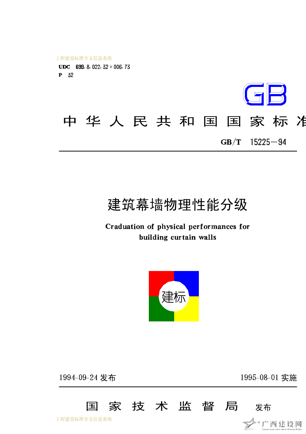 建筑幕墻空氣滲透性能檢測方法 GB/T15226-94