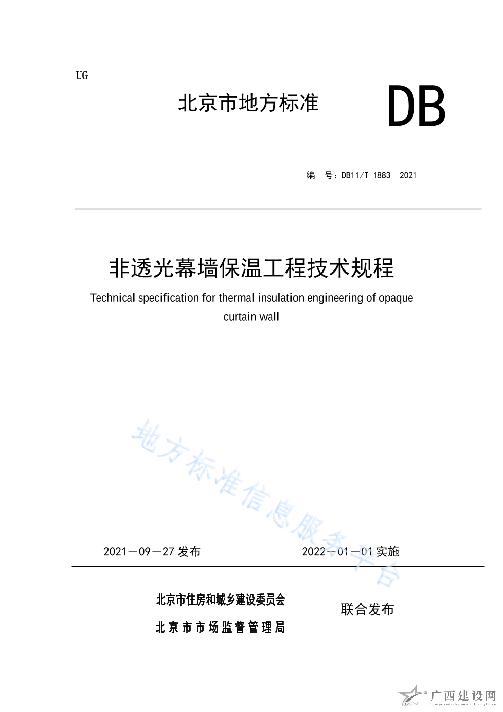 DB11 T+1883-2021非透光幕墻保溫工程技術(shù)規(guī)程