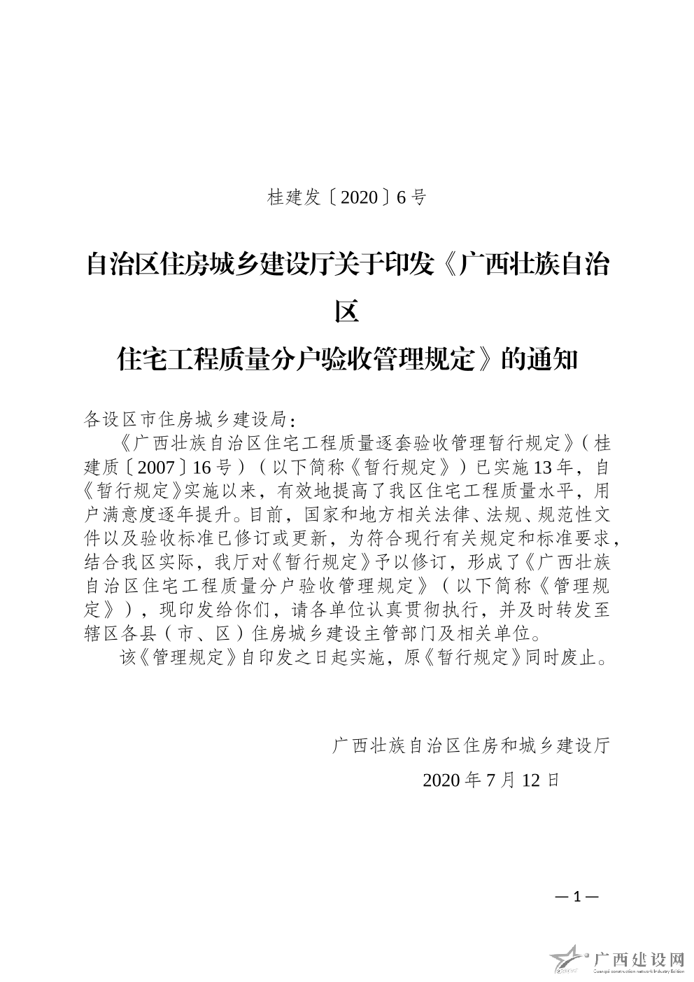 《廣西壯族自治區房屋建筑和市政基礎設施工程危險性較大的分部分項工程安全管理實施細則》(桂建發【2020】10號)的通知