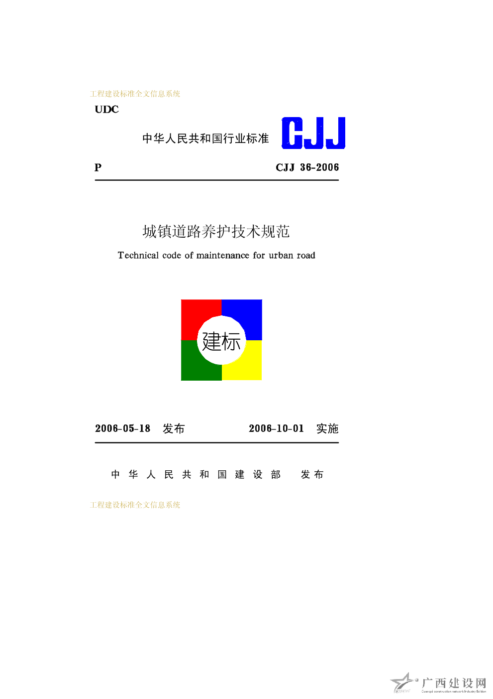 城鎮(zhèn)道路養(yǎng)護技術(shù)規(guī)范 CJJ36-2006