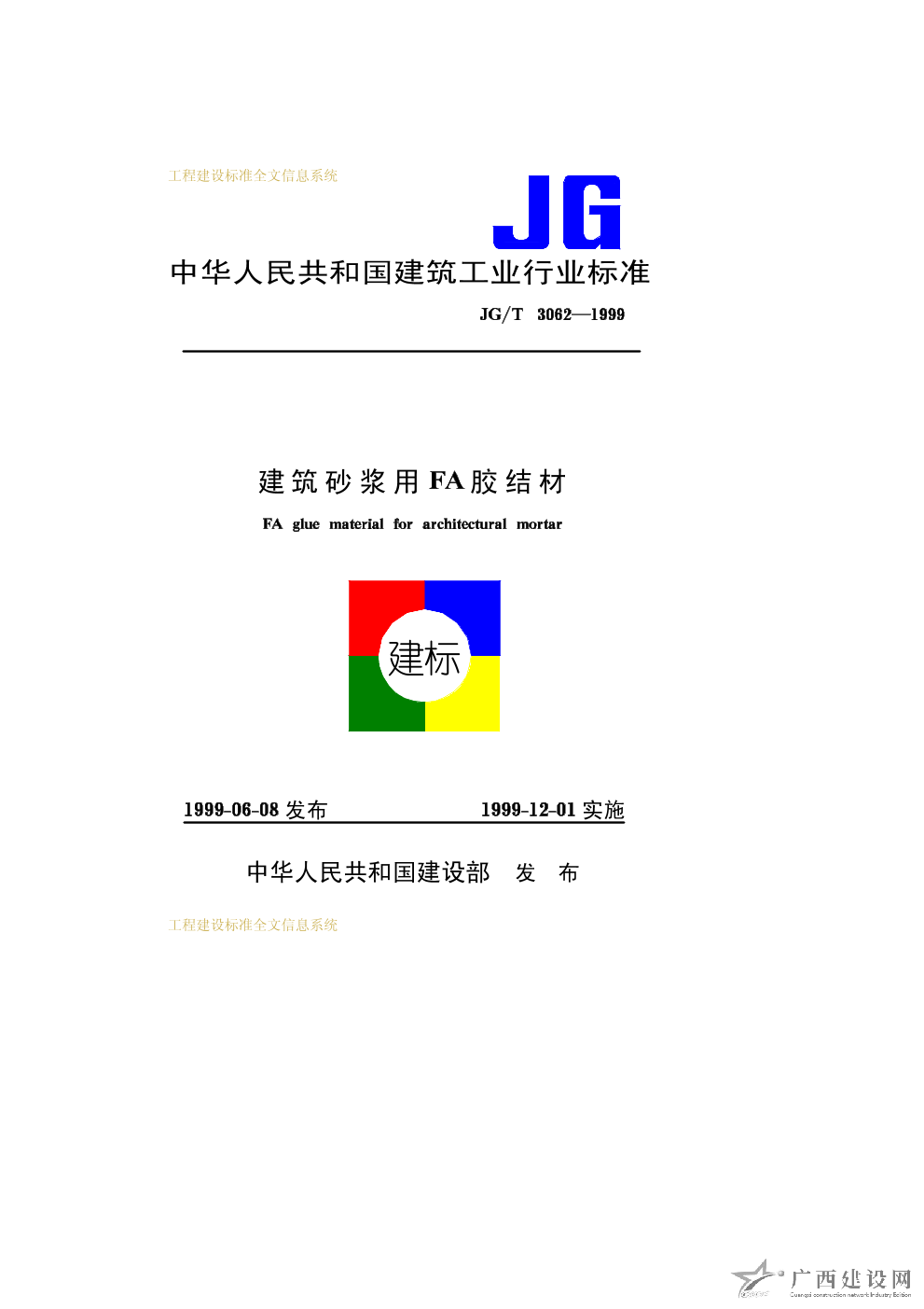 建筑砂漿用FA膠結材 JG/T3062—1999