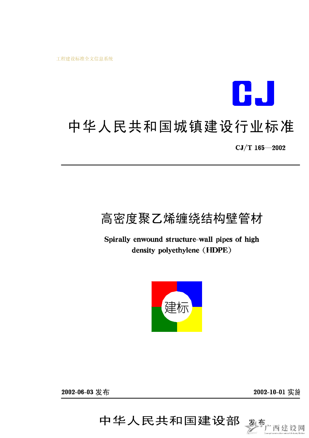 高密度聚乙烯纏繞結構壁管材 CJ/T165-2002