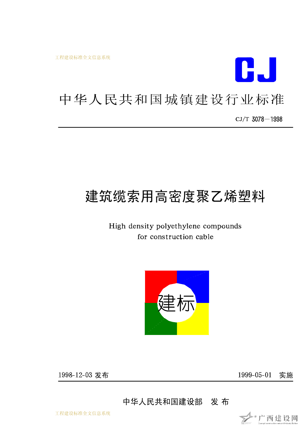 建筑纜索用高密度聚乙烯塑料 CJ/T3078-1998