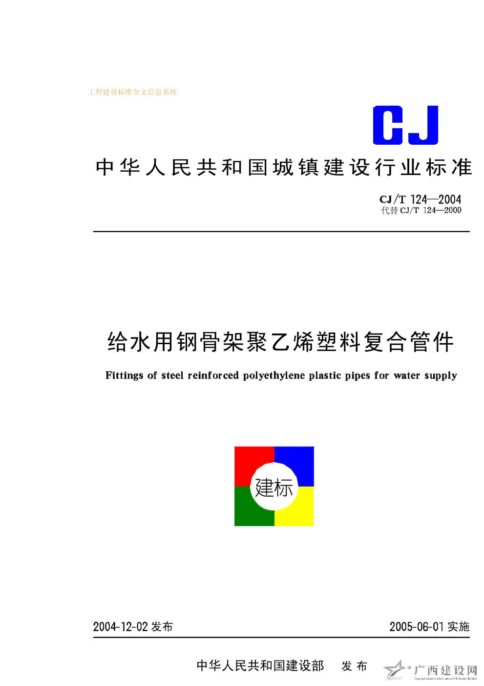 給水用鋼骨架聚乙烯塑料復合管件 CJ/T124-2004