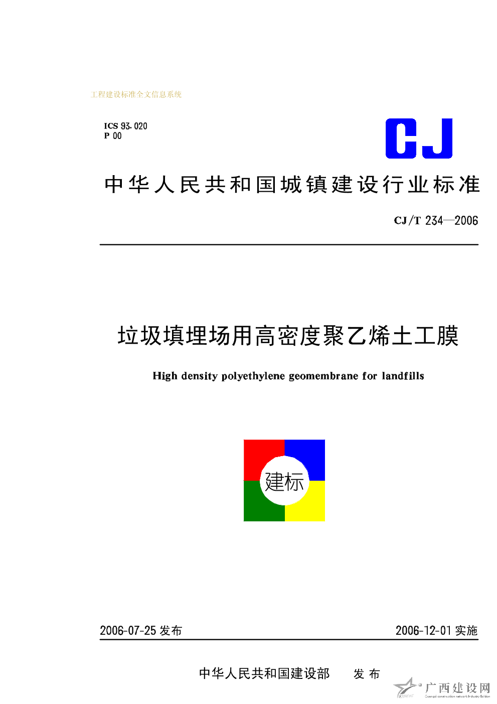 垃圾填埋場用高密度聚乙烯土工膜 CJ/T234-2006