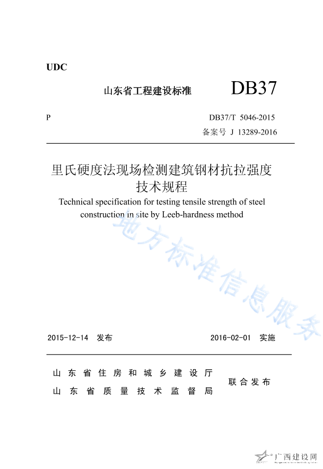 DB37 T5046-2015里氏硬度法現(xiàn)場檢測建筑鋼材抗拉強(qiáng)度技術(shù)規(guī)程
