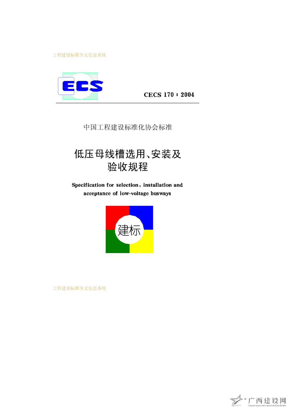 低壓母線槽選用、安裝及驗收規程 CECS170∶2004