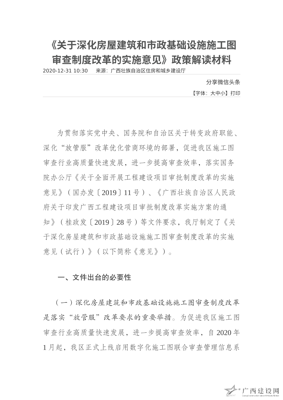 《關(guān)于深化房屋建筑和市政基礎(chǔ)設(shè)施施工圖審查制度改革的實(shí)施意見(jiàn)》政策解讀材料