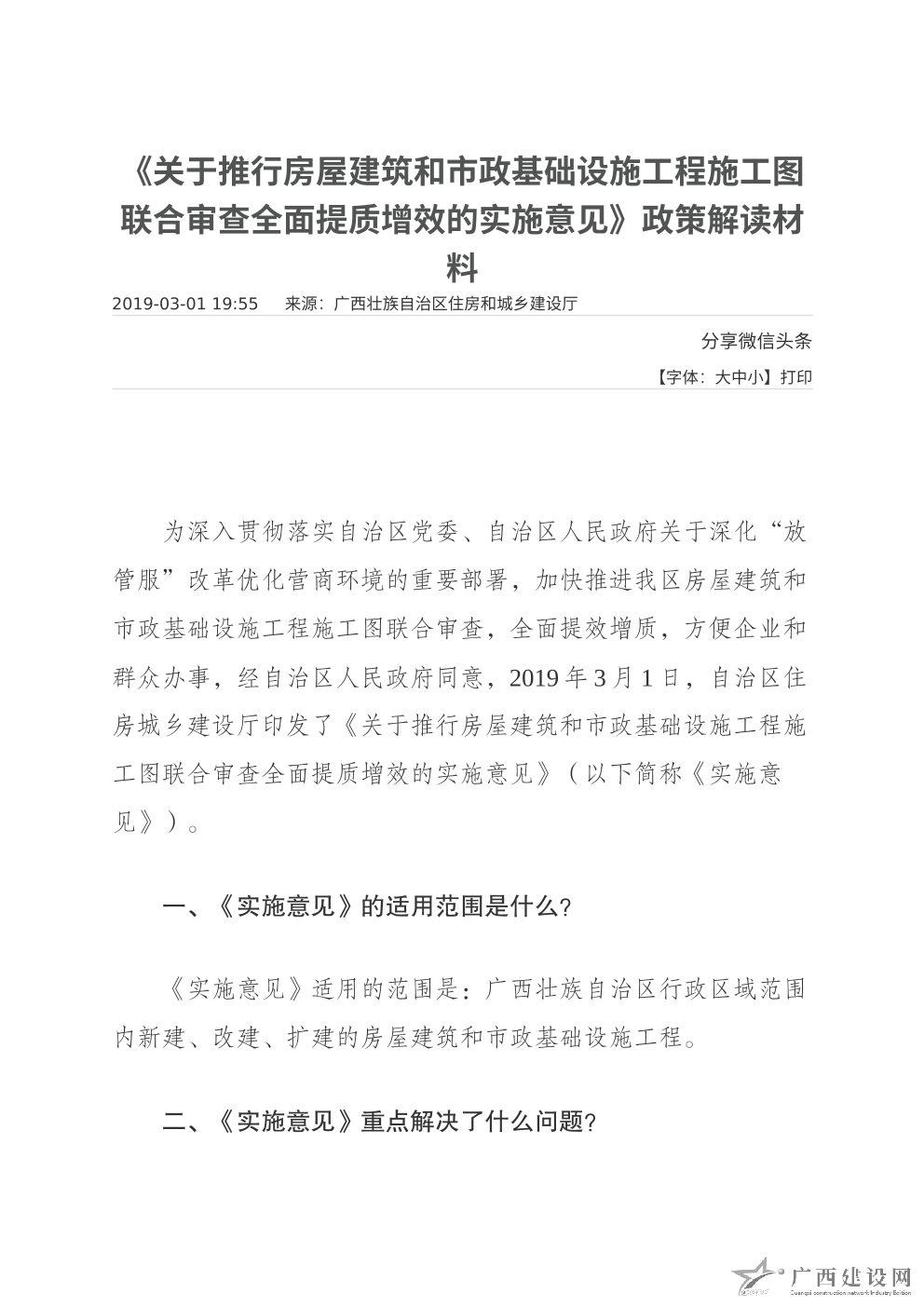 《關(guān)于推行房屋建筑和市政基礎(chǔ)設(shè)施工程施工圖聯(lián)合審查全面提質(zhì)增效的實(shí)施意見(jiàn)》政策解讀材料