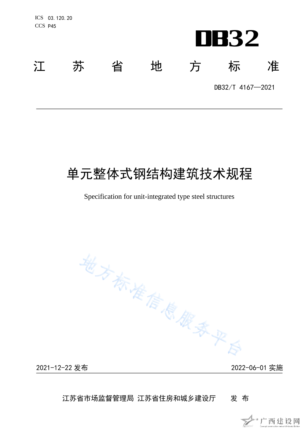 DB32 T4167-2021單元整體式鋼結(jié)構(gòu)建筑技術(shù)規(guī)程