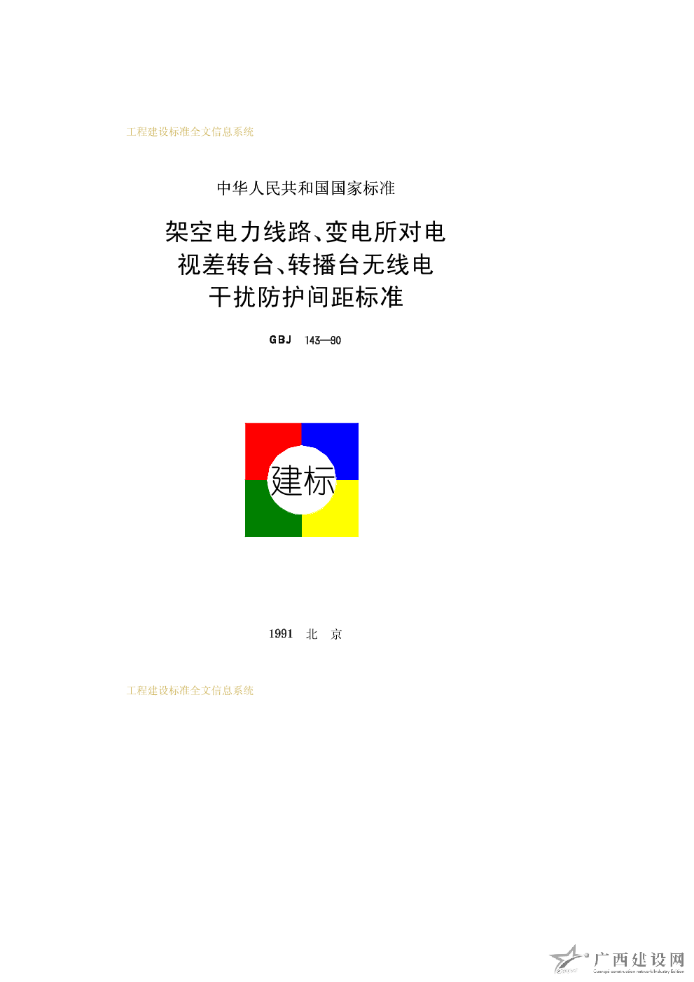 架空電力線路、變電所對電視差轉(zhuǎn)臺、轉(zhuǎn)播臺無線電干擾防護(hù)間距標(biāo)準(zhǔn) GBJ143—90