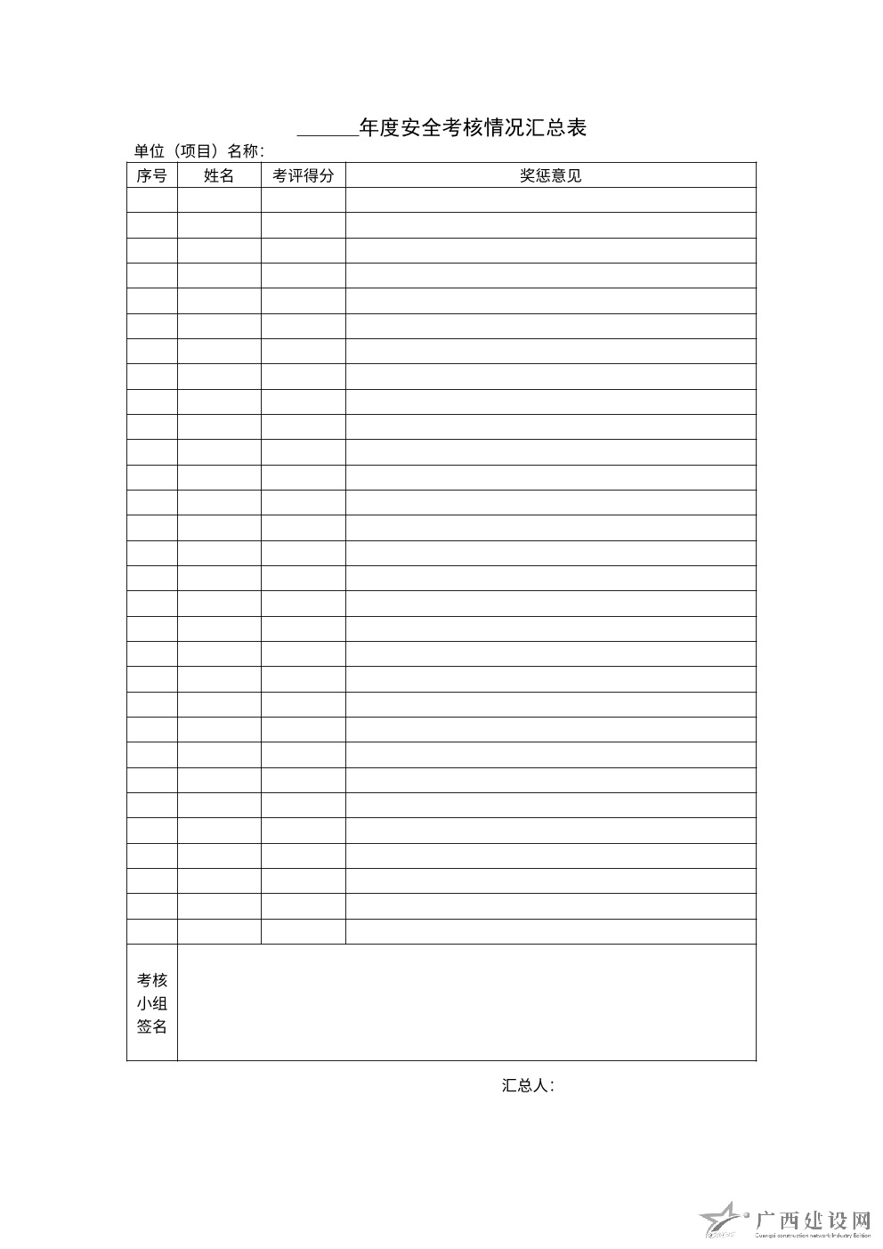 考核成績匯總表