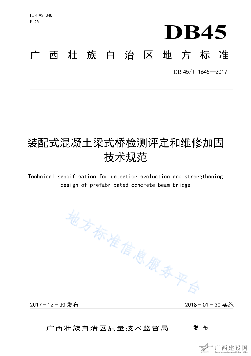 DB45T1645-2017裝配式混凝土梁式橋檢測(cè)評(píng)定和維修加固技術(shù)規(guī)范