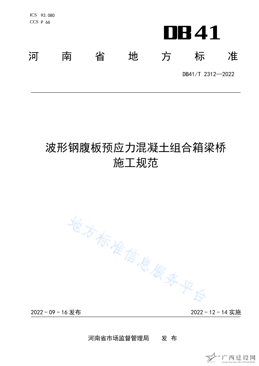 DB41 T2312-2022波形鋼腹板預(yù)應(yīng)力混凝土組合箱梁橋施工規(guī)范