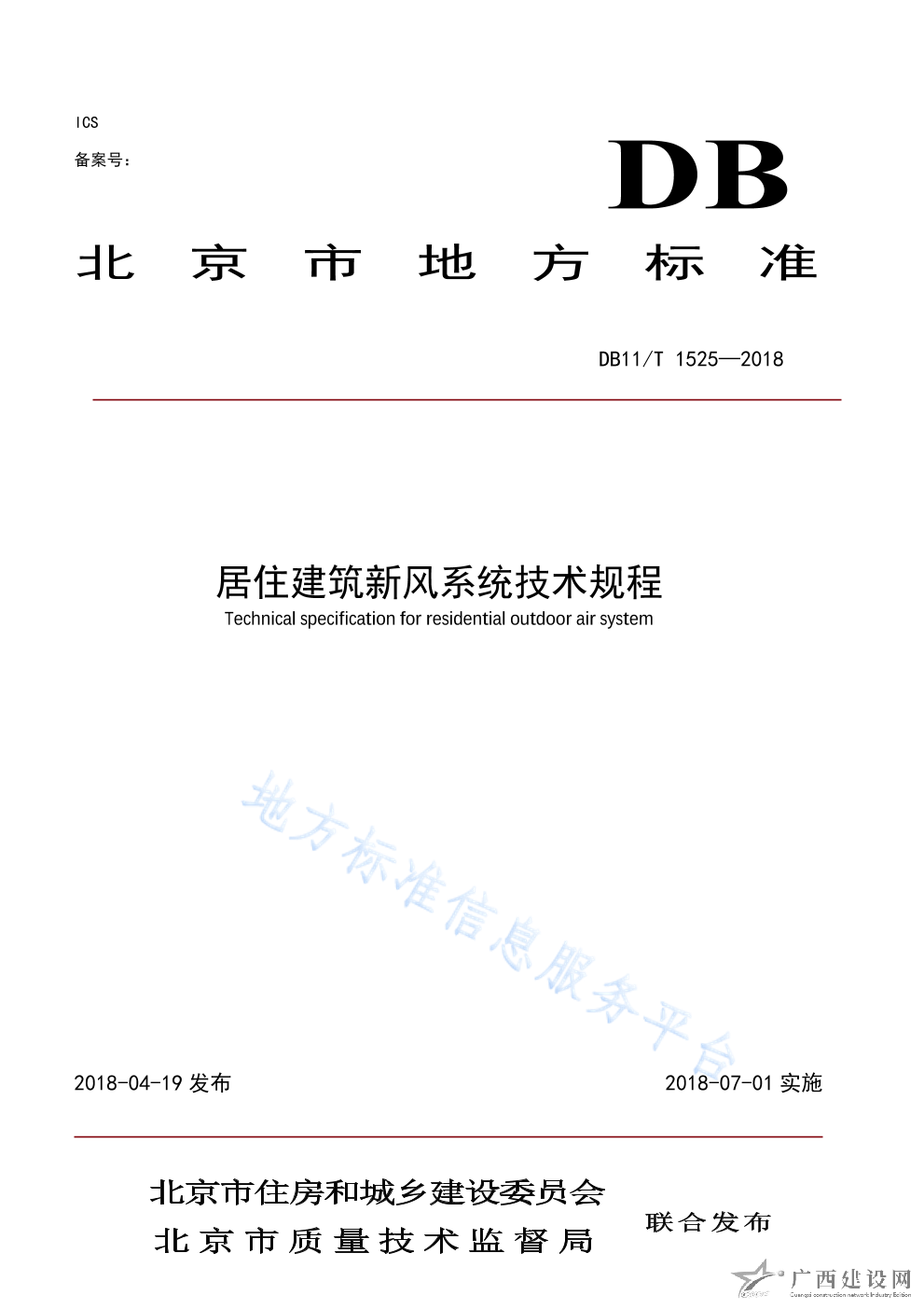 DB11 T+1325-2018居住建筑新風(fēng)系統(tǒng)技術(shù)規(guī)程