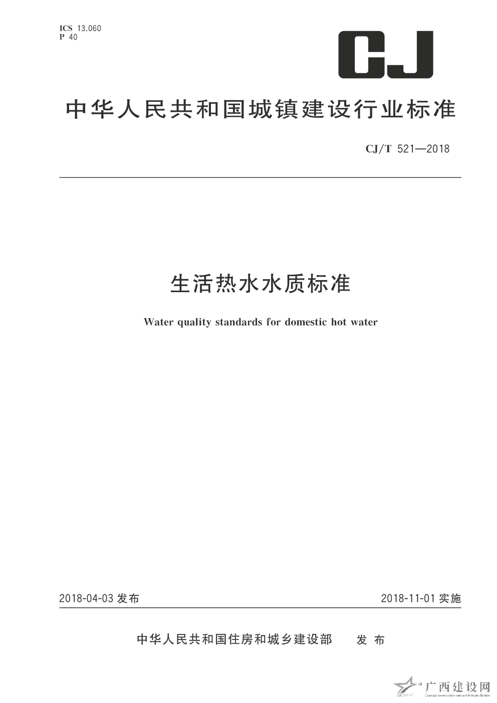 CJ-T521-2018:生活熱水水質(zhì)標(biāo)準(zhǔn)