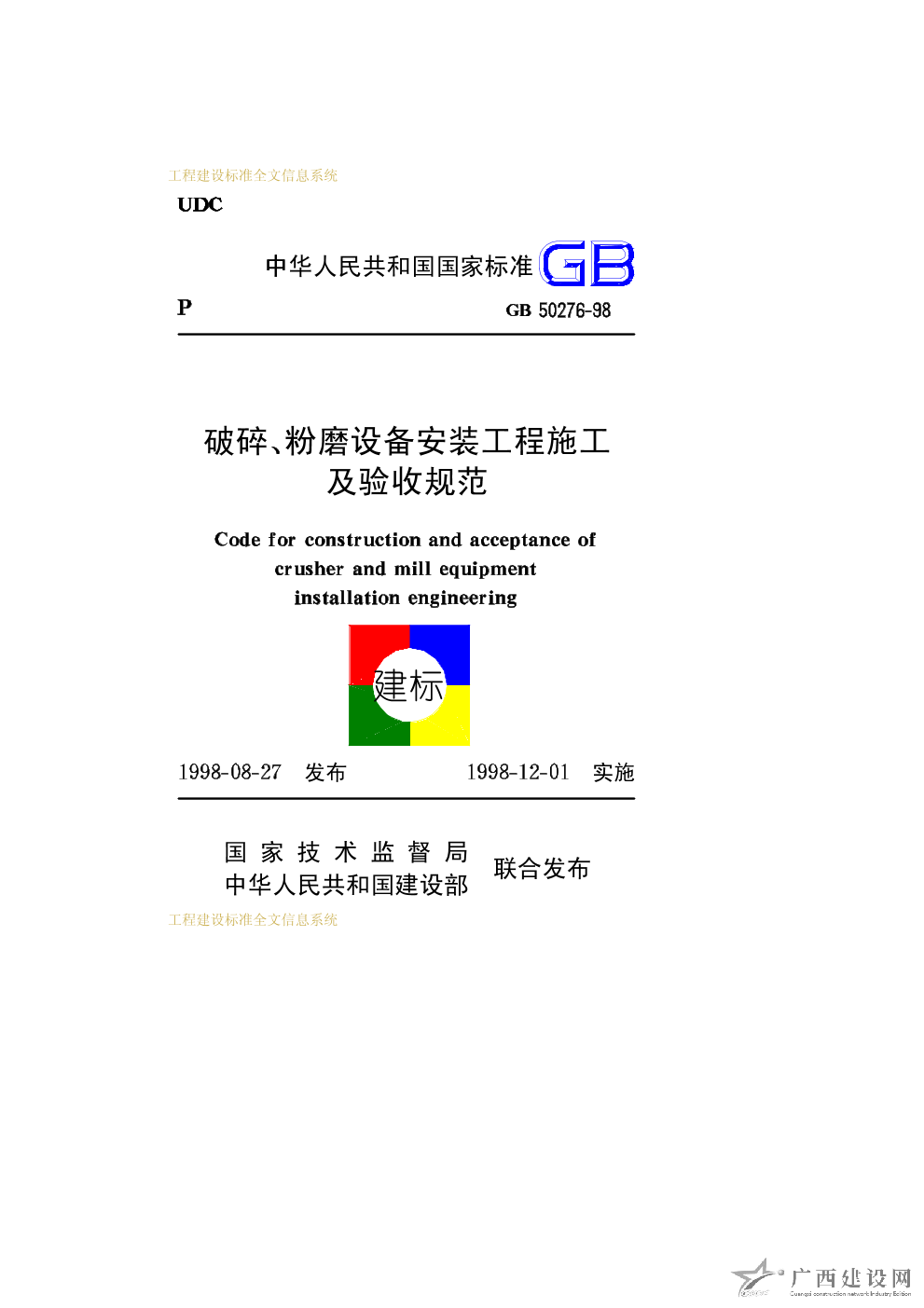 破碎、粉磨設備安裝工程施工及驗收規范 GB50276-98