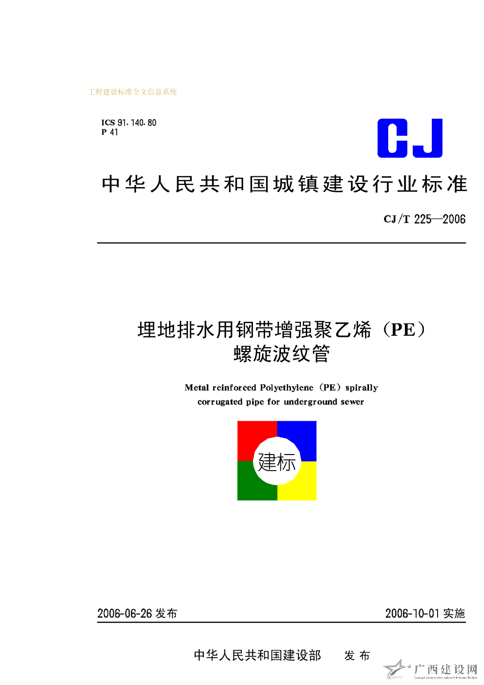 CJT250-2018 建筑排水用高密度聚乙烯管材及管件