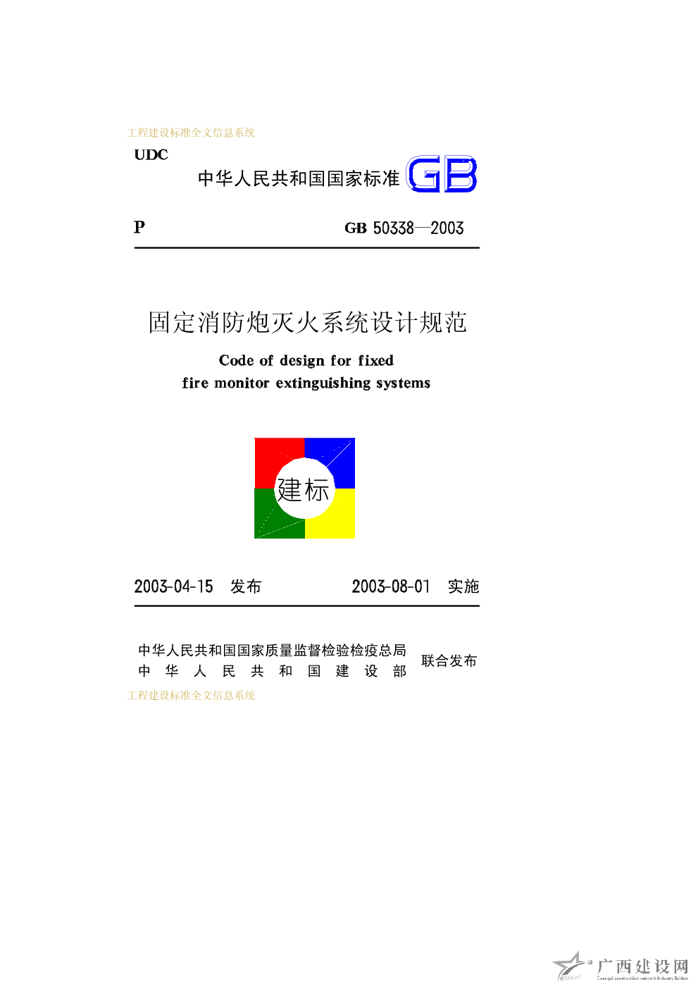 固定消防炮滅火系統(tǒng)設(shè)計(jì)規(guī)范 GB50338-2003