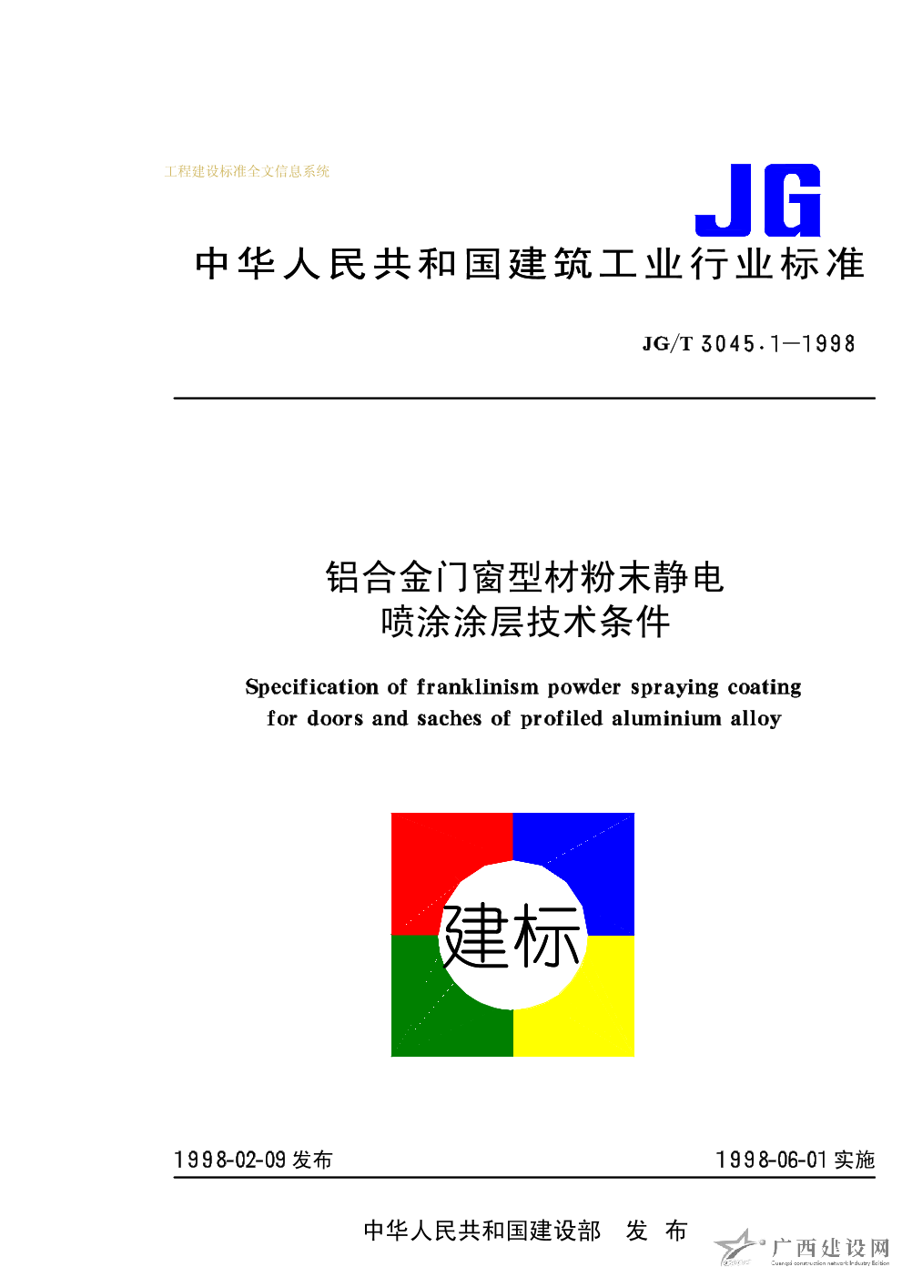 鋁合金門窗型材粉末靜電噴涂涂層技術(shù)條件 JG/T3045.1-1998