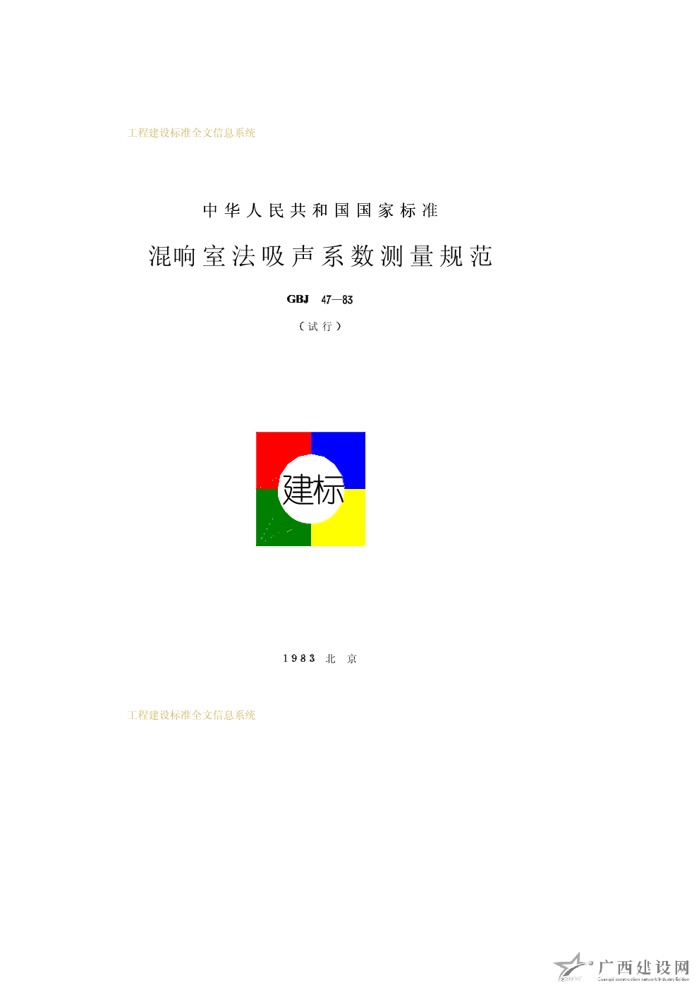 混響室法吸聲系數(shù)測量規(guī)范 GBJ47—83