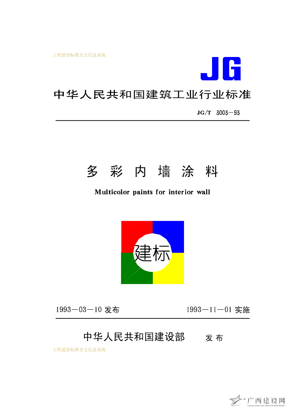多彩內(nèi)墻涂料 JG/T3003-93