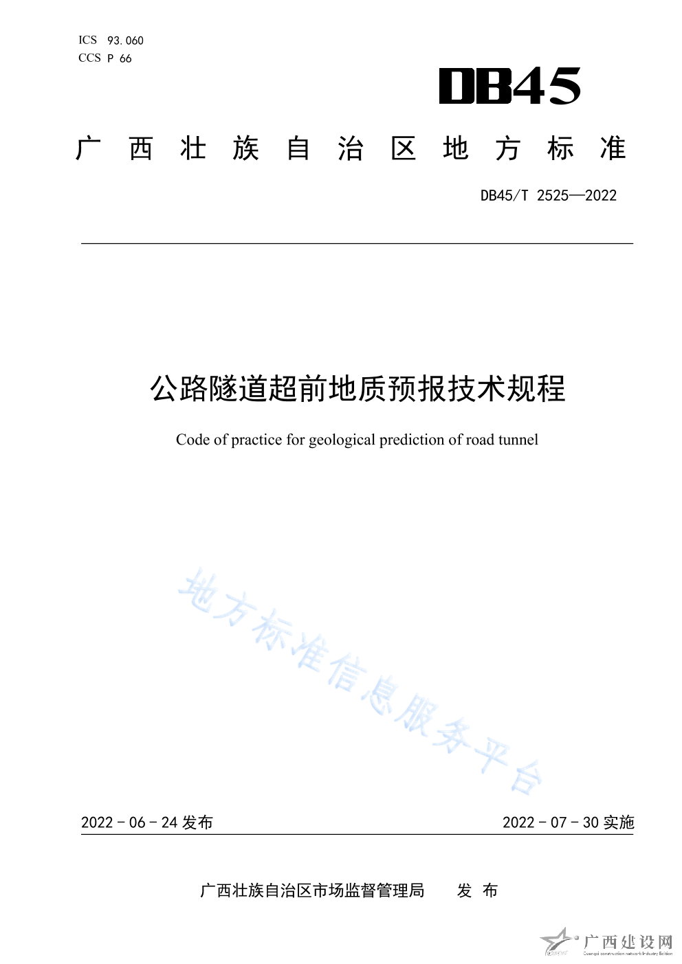 DB45T+2525-2022+公路隧道超前地質(zhì)預(yù)報(bào)技術(shù)規(guī)程