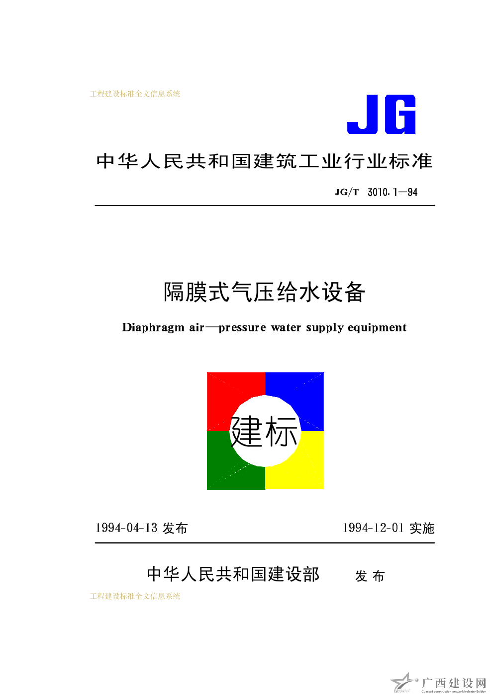 隔膜式氣壓給水設(shè)備 JG/T3010.1-94