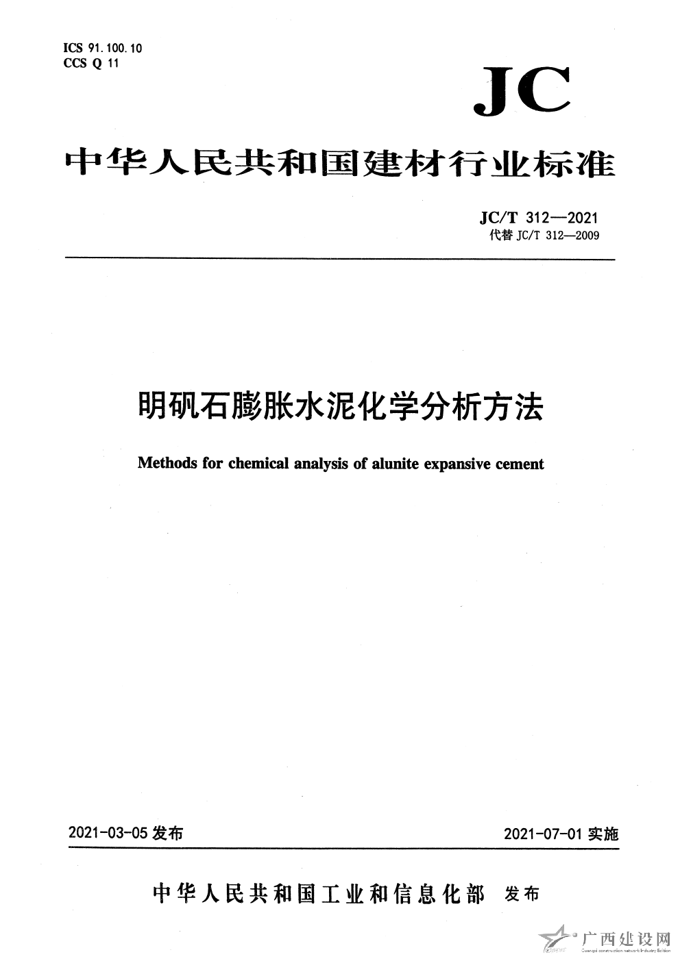 JC T 874-2021 水泥用硅質原料化學分析方法