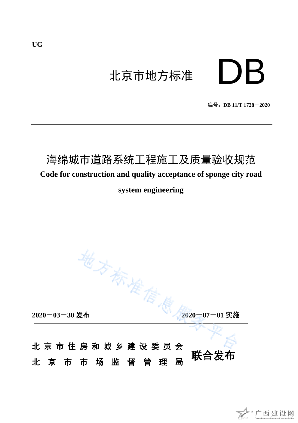 DB11 T+1728-2020海綿城市道路系統工程施工及質量驗收規范