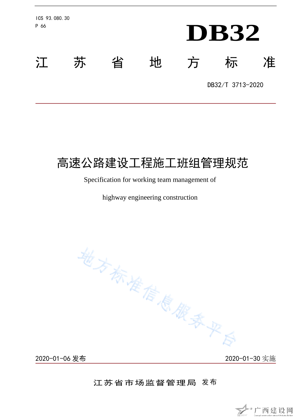 DB32 T3713-2020高速公路建設(shè)工程施工班組管理規(guī)范