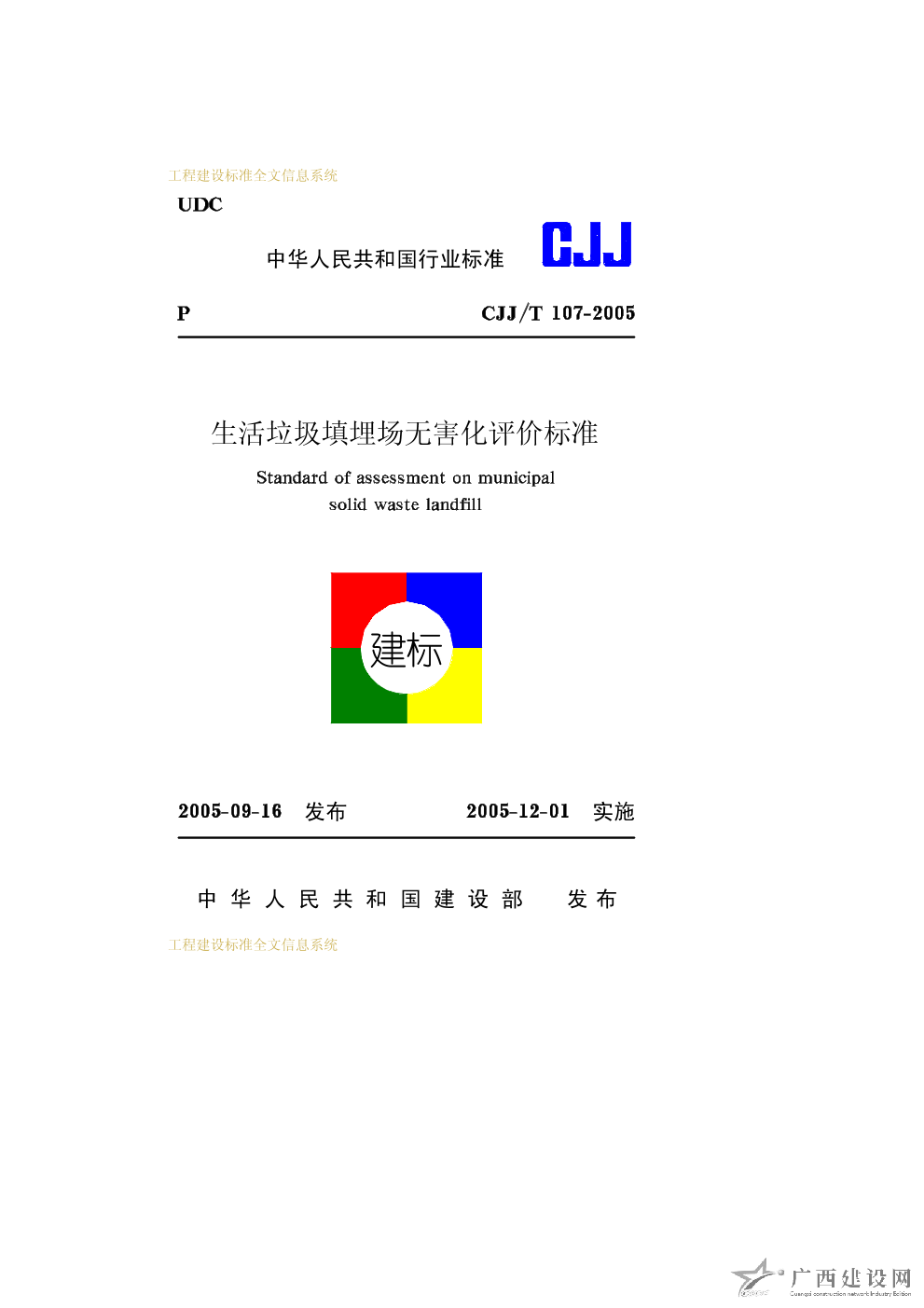 生活垃圾填埋場(chǎng)無(wú)害化評(píng)價(jià)標(biāo)準(zhǔn) CJJ/T107-2005