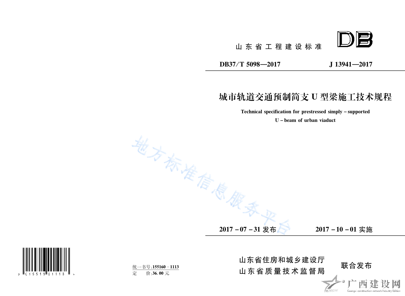 DB37 T5099-2017城市軌道交通清水混凝土施工技術規程