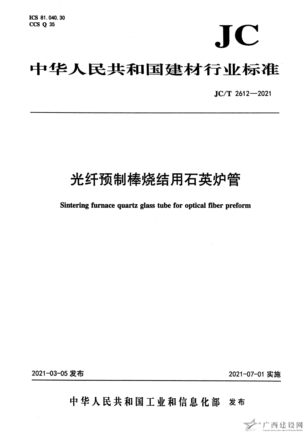 JCT 2612-2021 光纖預(yù)制棒燒結(jié)用石英爐管