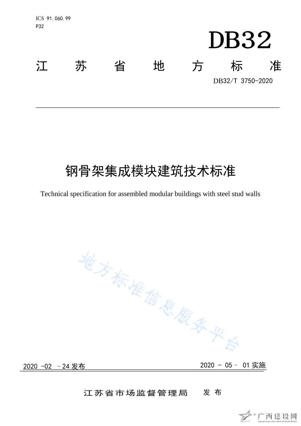 DB32 T3750-2020鋼骨架集成模塊建筑技術(shù)標(biāo)準(zhǔn)