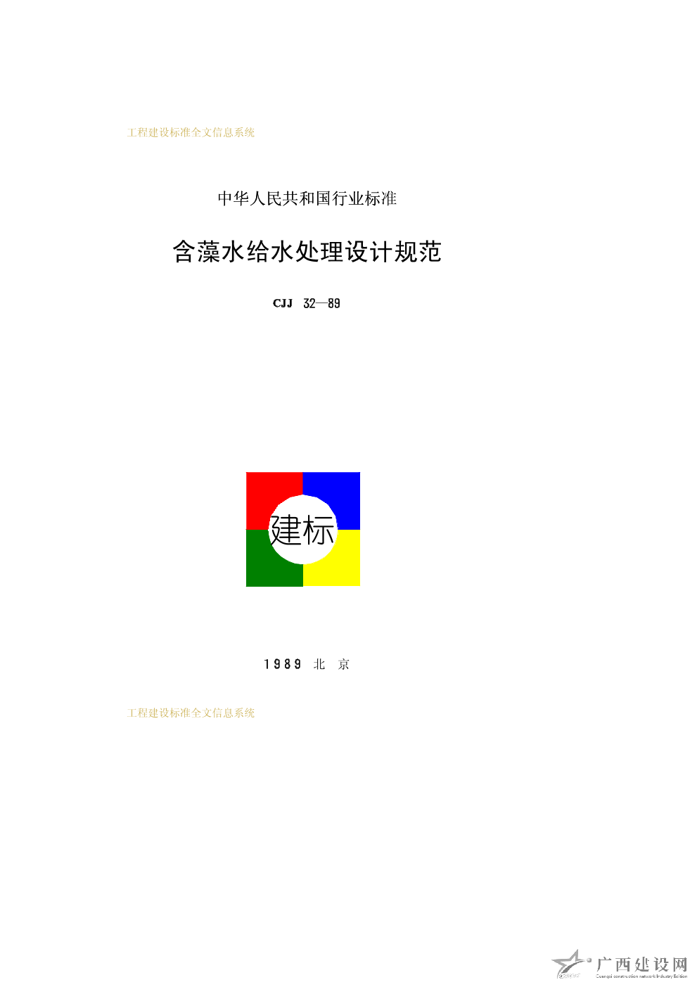含藻水給水處理設(shè)計(jì)規(guī)范 CJJ32—89