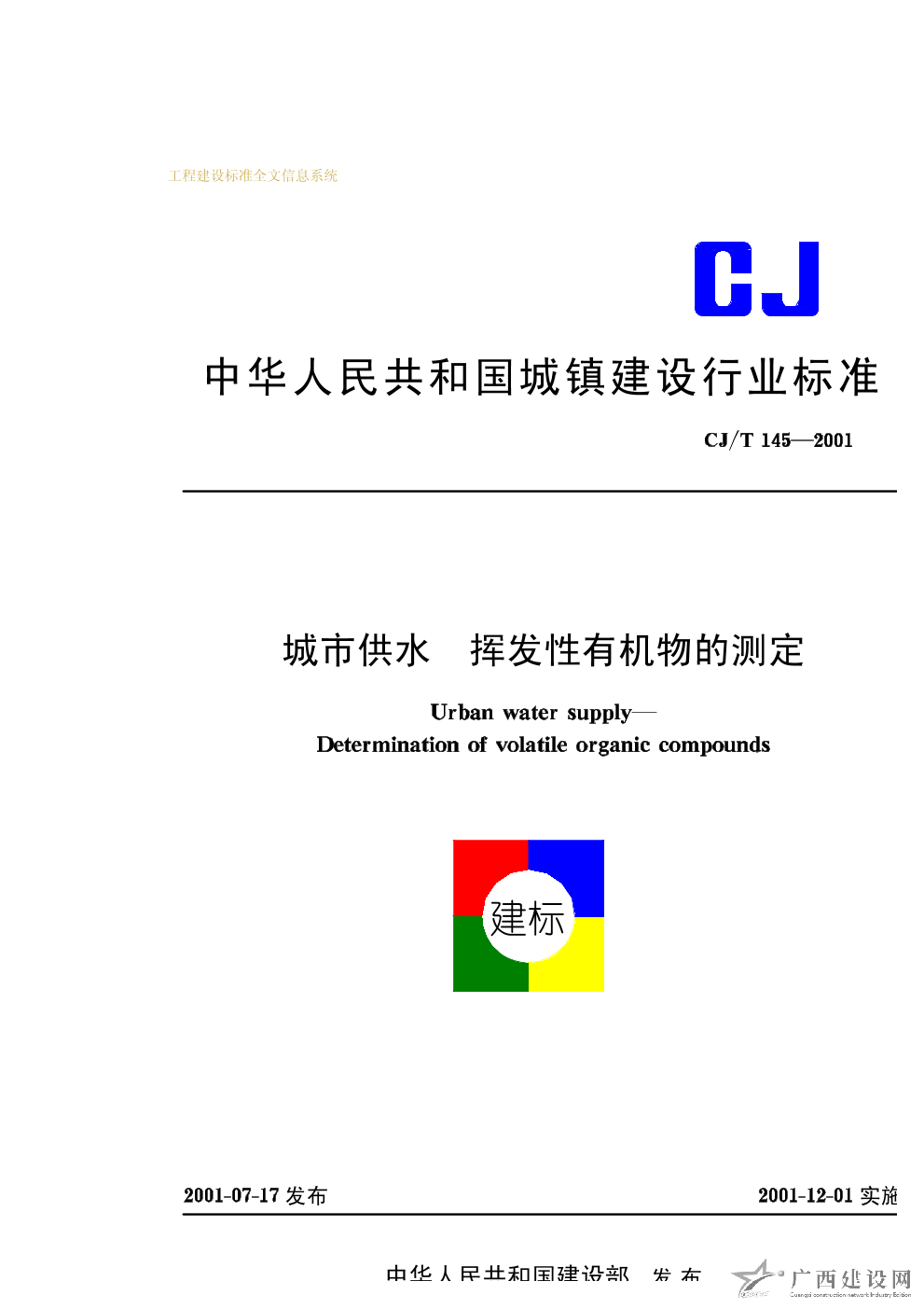 城市供水 揮發性有機物的測定 CJ/T145—2001