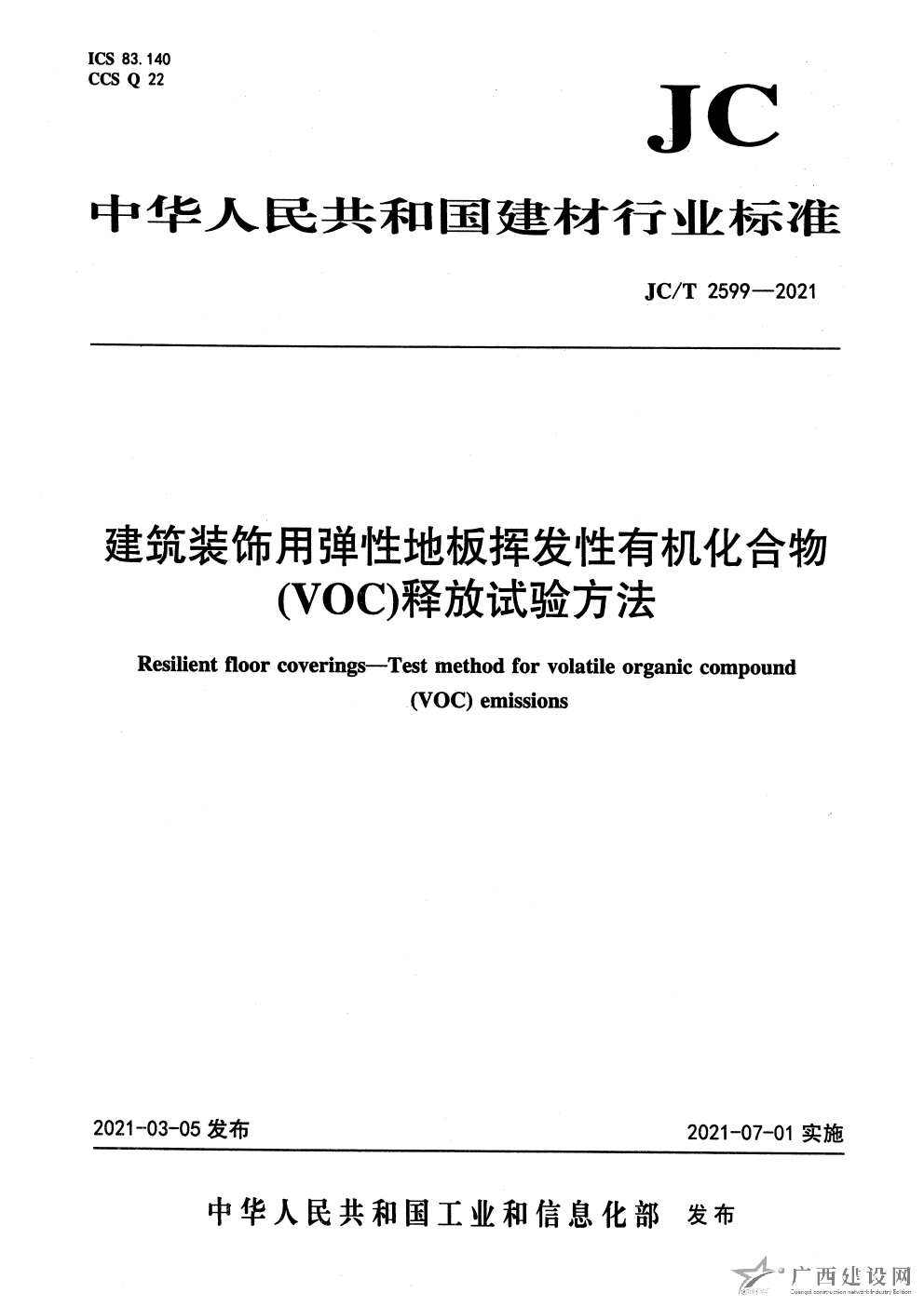 JC T 2599-2021 建筑裝飾用彈性地板揮發性有機化合物(voc)釋放試驗方法
