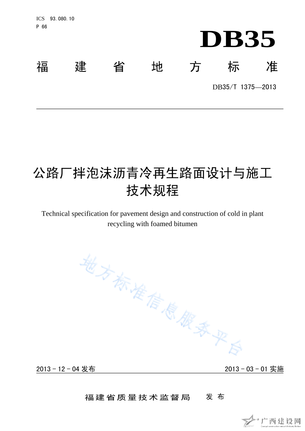 DB35 T1375-2013公路廠拌泡沫瀝青冷再生路面設(shè)計(jì)與施工技術(shù)規(guī)程