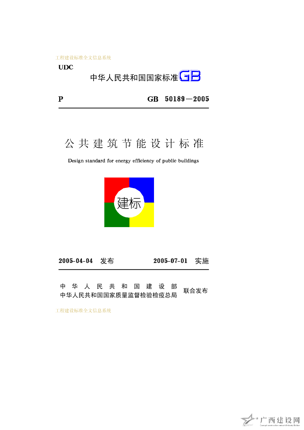 公共建筑節(jié)能設(shè)計(jì)標(biāo)準(zhǔn) GB50189-2005