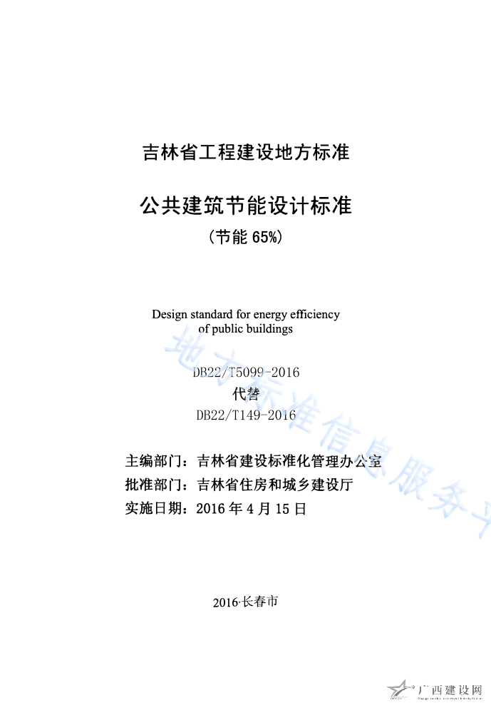 DB22T5099-2016公共建筑節(jié)能設(shè)計(jì)標(biāo)準(zhǔn)(節(jié)能65%)