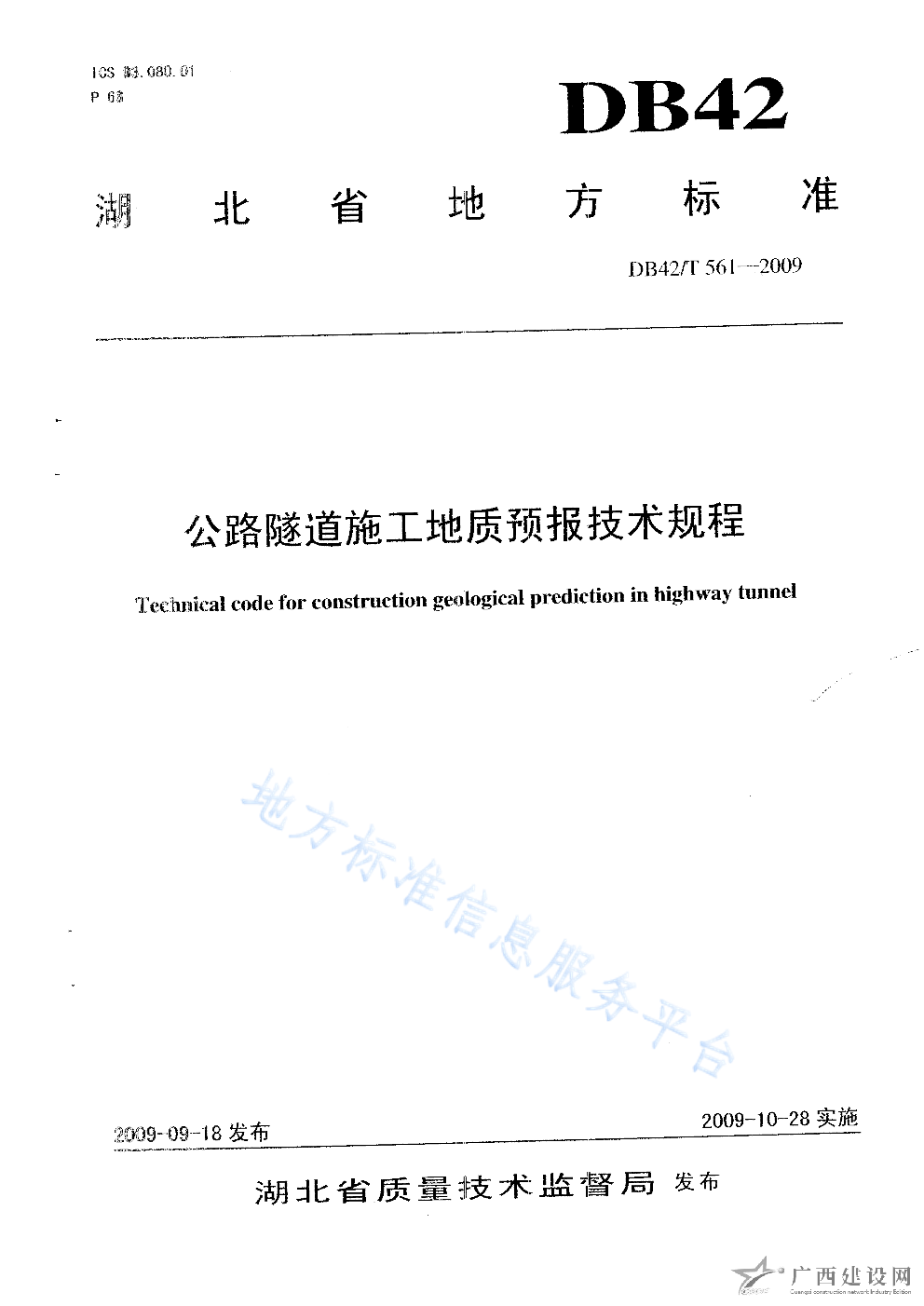DB42 561-2009公路隧道施工地質(zhì)預(yù)報(bào)技術(shù)規(guī)程
