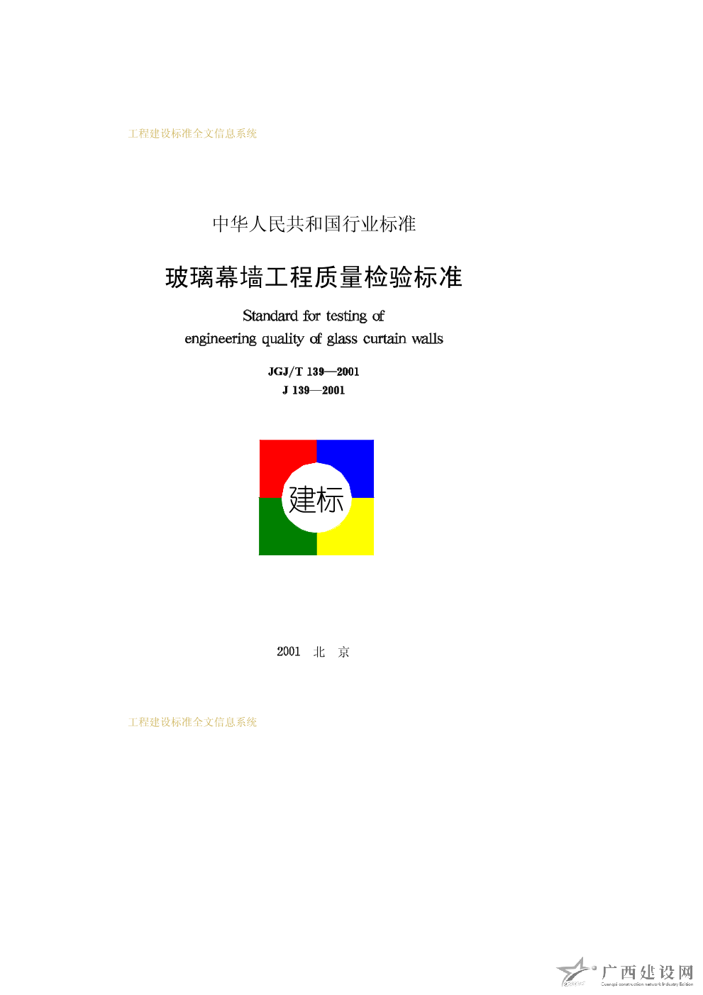 玻璃幕墻工程質(zhì)量檢驗(yàn)標(biāo)準(zhǔn) JGJ/T139—2001