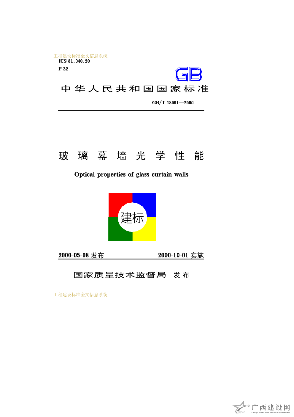 玻璃幕墻光學(xué)性能 GB/T18091—2000