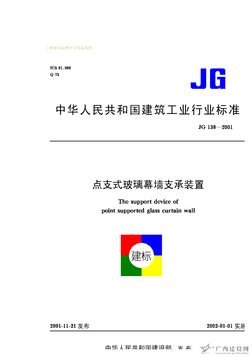 點(diǎn)支式玻璃幕墻支承裝置 JG138—2001